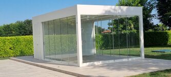 Entrambe le strutture possono essere completate con: vetrate, chiusure laterali zip, e una vasta gamma di accessori come luci a LED e varie predisposizioni per canna fumaria, impianto elettrico, riscaldamento a pavimento, ecc.