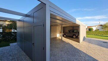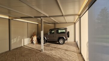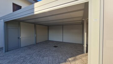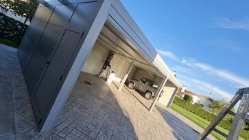 Il carport fotovoltaico Orius si basa sulla struttura Libra Parking, tettoia fissa pensata appositamente per la copertura del posto auto e disponibile sia nella versione ad isola che addossata.