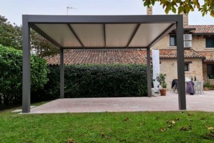 La pergola PARKING è costruita con i medesimi profili della pergola ORIUS: questo consente di realizzare strutture più ampie in grado di coprire anche 2 o più posti auto.